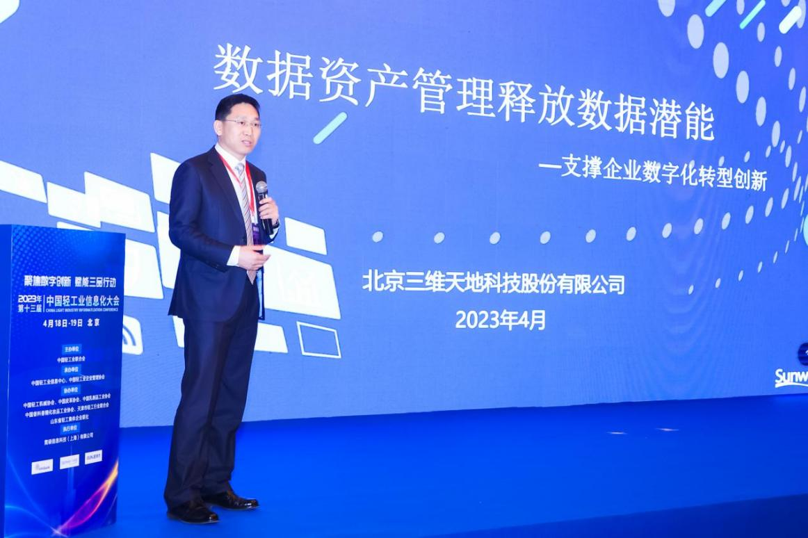 4月18-19日,由中國輕工業(yè)聯(lián)合會主辦,中國輕工業(yè)信息中心、中國輕工業(yè)企業(yè)管理協(xié)會承辦的2023年第十三屆中國輕工業(yè)信息化大會在北京成功召開。北京三維天地科技股份有限公司受邀參會并作主題演講。 三維天地副總裁曹朝輝受邀參會,并作《數(shù)據(jù)資產(chǎn)管理釋放數(shù)據(jù)潛能——支撐企業(yè)數(shù)字化轉(zhuǎn)型創(chuàng)新》主題演講。 他表示,隨著數(shù)據(jù)成為新的生產(chǎn)要素,“數(shù)據(jù)資產(chǎn)化”已經(jīng)成為了企業(yè)發(fā)展的重要組成部分。數(shù)據(jù)要素不僅能提升傳統(tǒng)單一要素生產(chǎn)效率、優(yōu)化傳統(tǒng)要素資源配置效率、替代傳統(tǒng)要素的投入和功能,還能在商機(jī)洞察、降本增效、風(fēng)險管控與輔助決策等方面為企業(yè)數(shù)字化轉(zhuǎn)型保駕護(hù)航。但企業(yè)要正確有力地利用好數(shù)據(jù),就需要做好數(shù)據(jù)管理體系的構(gòu)建。 數(shù)據(jù)治理是數(shù)字化轉(zhuǎn)型的根基,是對數(shù)據(jù)資產(chǎn)的管理形式權(quán)力和控制的活動集合,它不僅是一套用工具組合的產(chǎn)品級解決方案,更是從決策層到技術(shù)層,從管理制度到工具支撐,自上而下貫穿整個組織架構(gòu)的完整鏈條,以期通過持續(xù)的評估、指導(dǎo)和監(jiān)督,確保富有成效且高效的數(shù)據(jù)利用,促進(jìn)組織協(xié)作和結(jié)構(gòu)化決策,為企業(yè)創(chuàng)造價值。